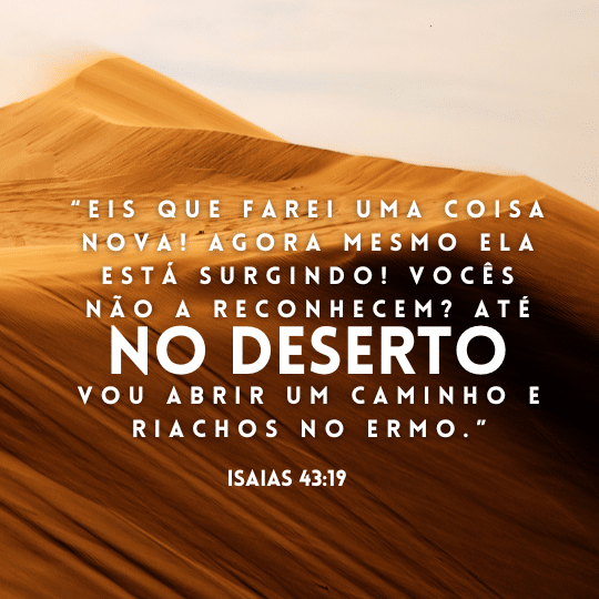 A fé do deserto é a fé que amadurece, que se aprofunda, que permanece. Neste lugar de solidão e silêncio, somos chamados a ouvir a voz do Senhor. Pode até parecer que nada está acontecendo, mas Deus está abrindo um caminho e fazendo brotar água onde você só enxergava dor. O deserto não é o seu lugar final, apenas de passagem e preparação.